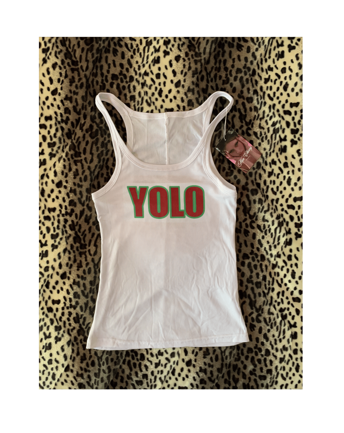 ππOur YOLO white tank top is handmade and one of a kind piece which is part of our dead stock premium collection only available on our Depop and website π only a few made , there is slight fading around the text ,